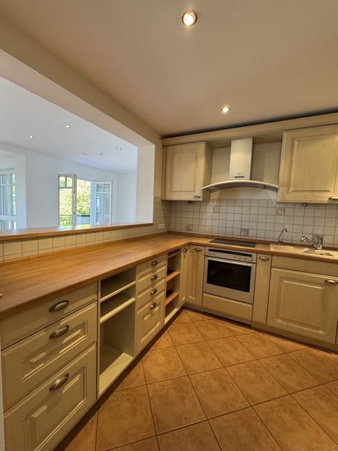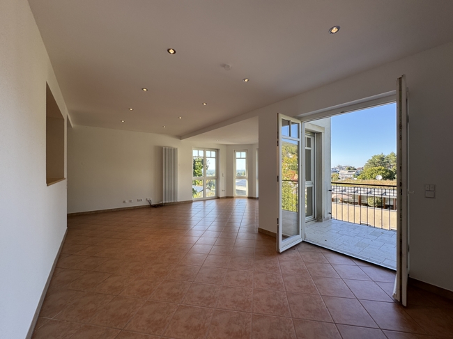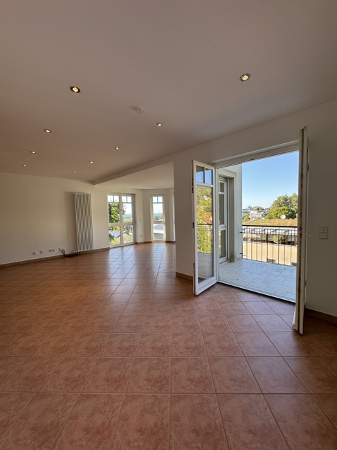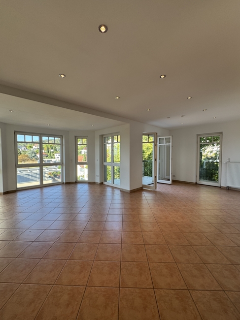 Der Wohn-/Essbereichs mit den zwei Balkonen und der anschließenden Küche mit großer Durchreiche bildet die Lebeeinheit, die noch herrliche Blickachsen und die schöne Westsonne bereithält.
