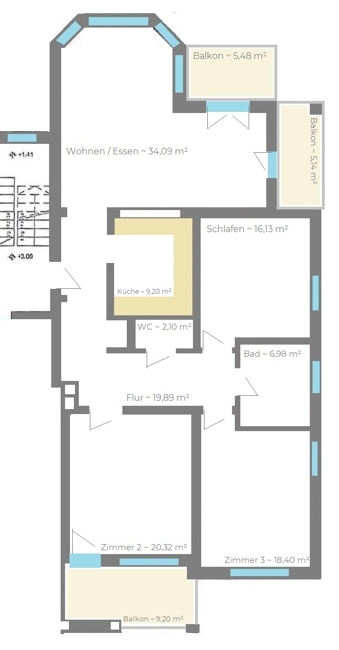 + Blk 3 ca. 9,20 m² (zu ½ in Wfl.)