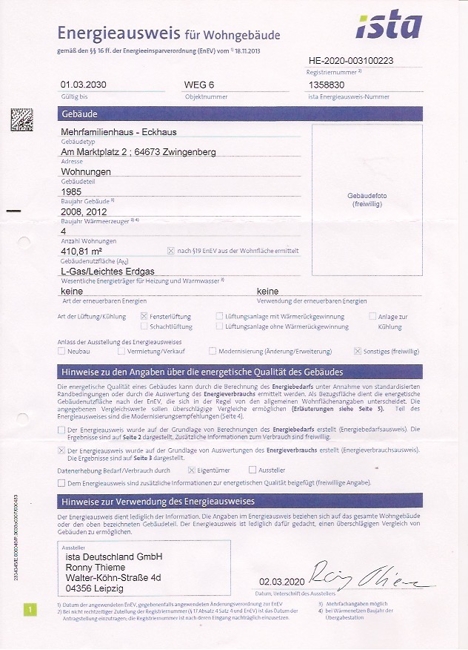 Energieausweis Verbrauch 89 kWh/(m²a)